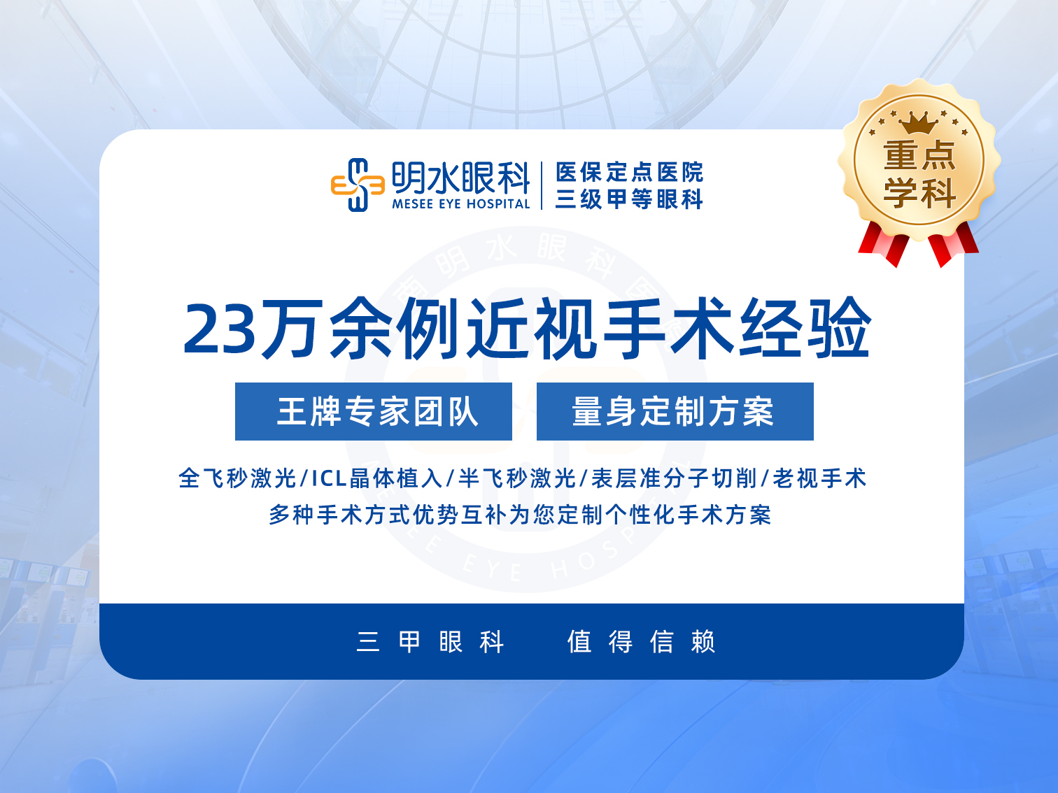 济南明水眼科医院角膜屈光科是济南市重点专科,在山东省较早开展飞秒激光近视矫正手术。科室拥有先进的设备和丰富的临床经验,配备有国际一流的术前检查设备以及多台手术设备,先后开展了PRK、LASIK、LASEK、Epi-LSAIK、SBK、飞秒激光LASIK 、T-PRK、SMART、全飞秒激光(ReLEX SMILE)以及眼内镜植入术等十多种近视矫正方法,多种手术方案的设计,优势互补,可以满足不同患者的需求。