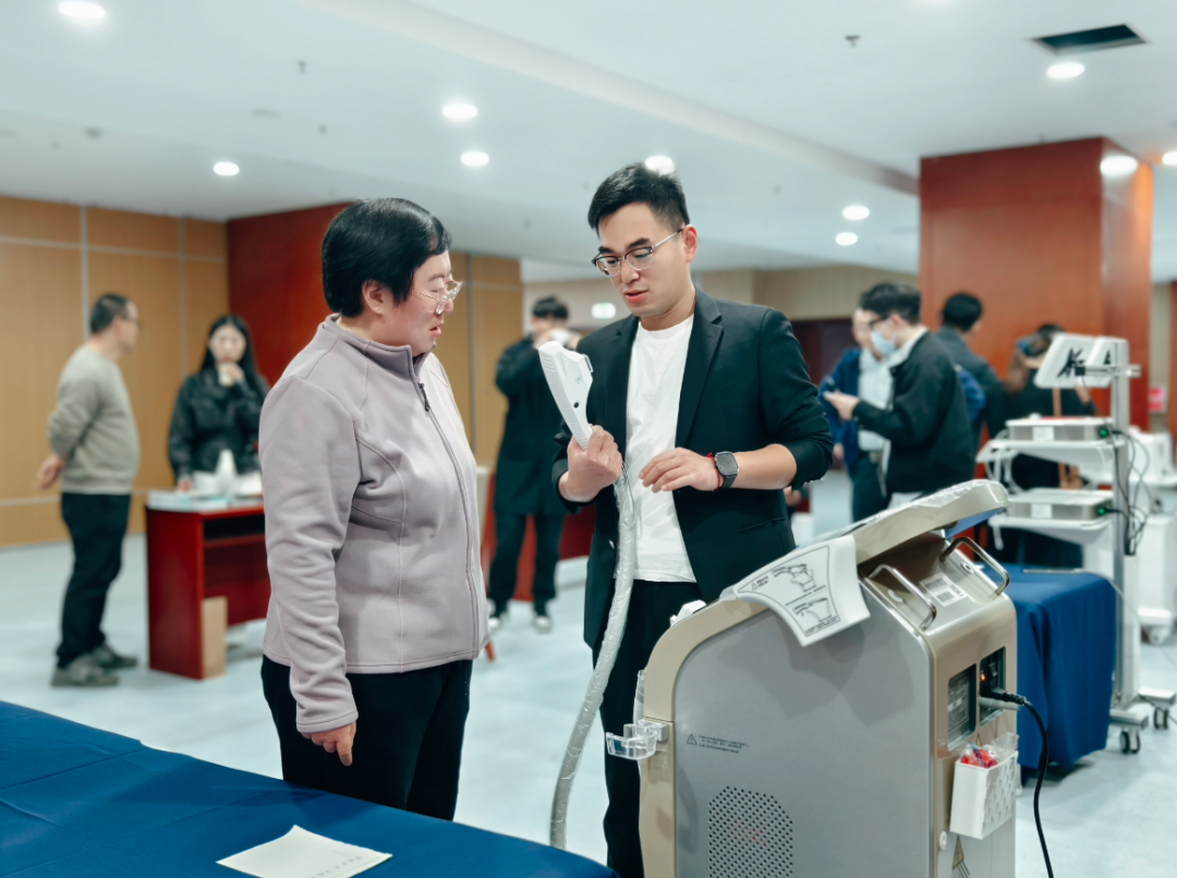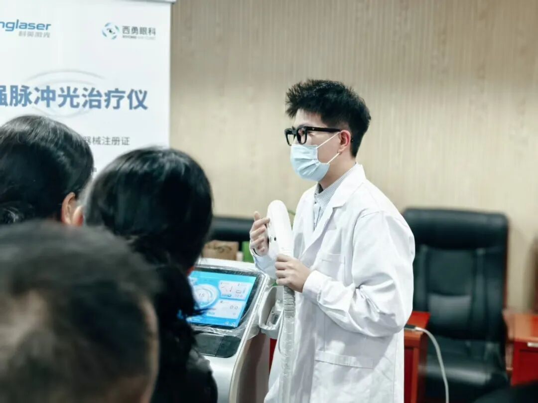除了丰富的理论授课,本次培训班还特别设置了干眼治疗室参观及实操环节。为了让参会者获得更直观的体验效果,大会组委会特别安排了干眼检测、雾化熏蒸治疗、强脉冲光治疗及热脉动治疗等体验项目,吸引了与会同仁的参加与体验。