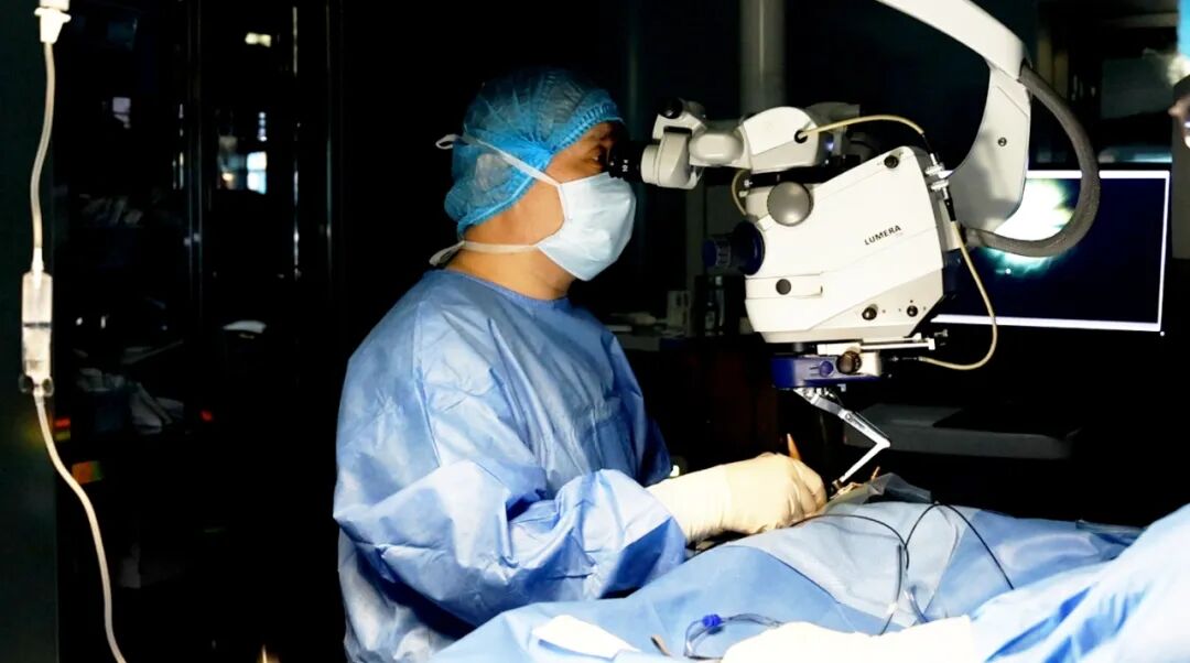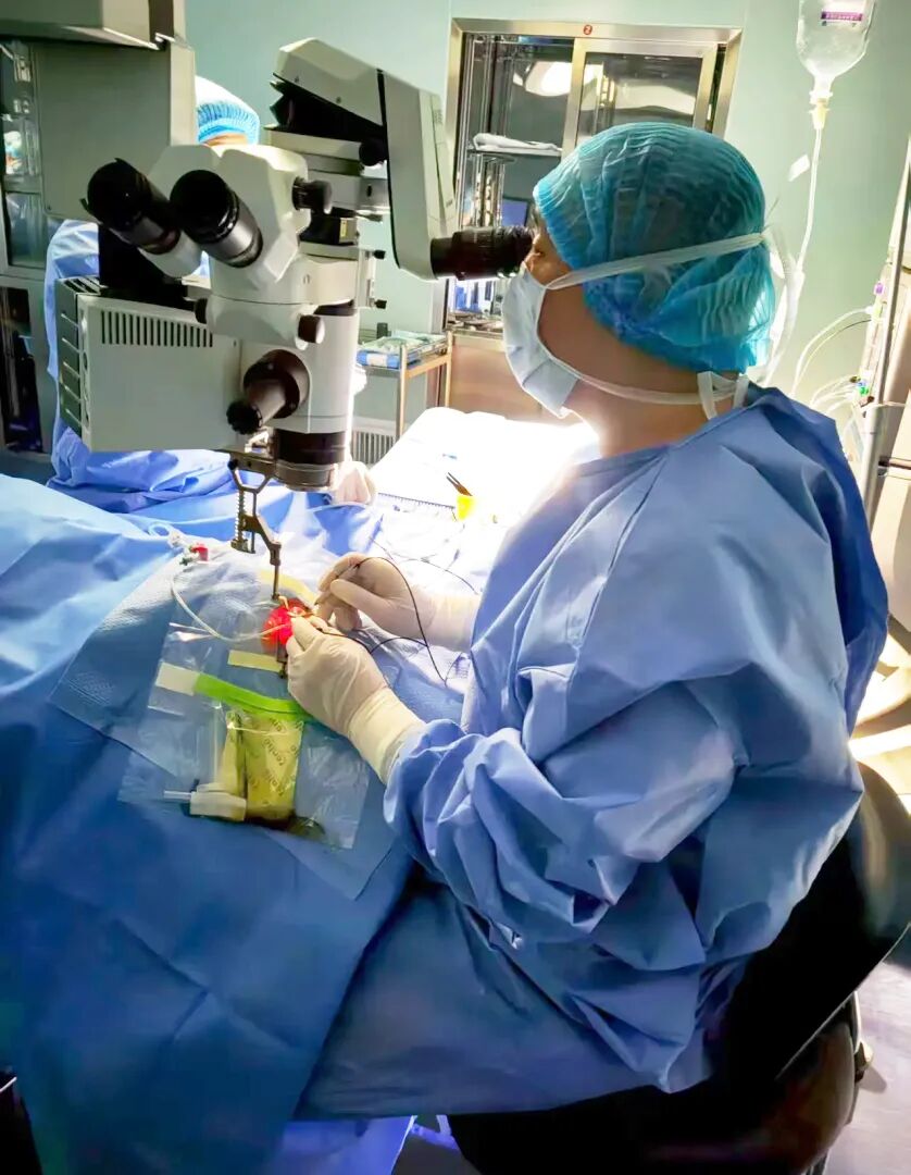 面对复杂的病情,我院眼底病科主任韩彦辉,经过详细检查和术前研讨,决定给予患者“左眼微创玻璃体切割+视网膜下t-PA注射+巩膜外穿刺放液术”的综合治疗方案,最大限度的挽救姜先生视力。