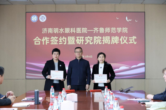 2026年2月6日,济南明水眼科医院与齐鲁师范学院战略合作协议签约暨眼科数智研究院揭牌仪式在我院隆重举行。此次合作标志着双方将携手整合医疗与高校资源,共同建设眼科大数据平台,全力推动AI诊断与智能诊疗转型,为区域眼科医疗高质量发展注入强劲动力。