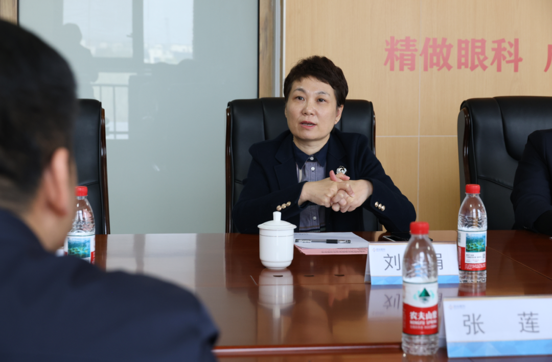 参观结束后,双方在五楼会议室开展座谈交流。李金凤院长代表医院对李明书记一行的到来表示欢迎。她指出,当前视光学与眼科医疗的融合日益紧密,希望以此交流为契机,进一步深化双方合作,实现互利共赢。
