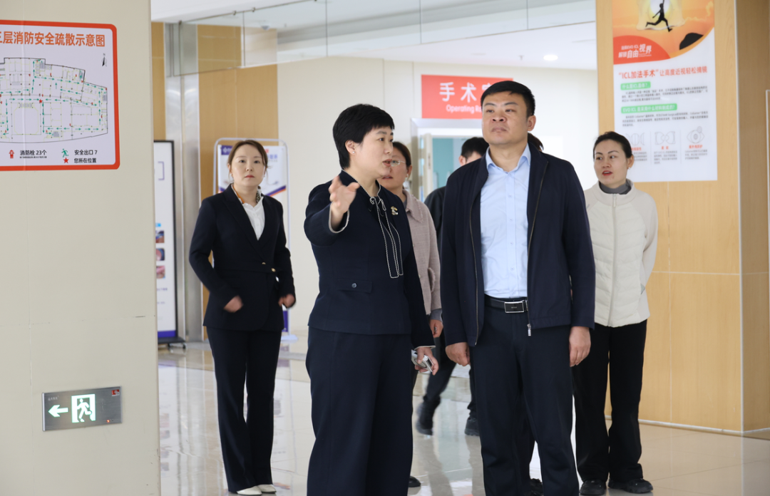 在院方领导陪同下,李明书记一行先后参观了我院角膜屈光科、视光中心、眼科门诊、日间手术中心等核心诊疗区域,对医院的医疗环境、设施配备及诊疗流程进行了实地考察。