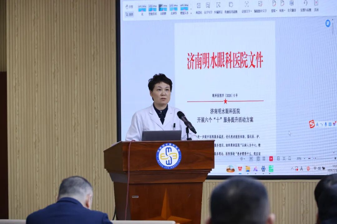为深入贯彻落实济南市章丘区卫生健康局《关于开展“六美一满意”文明医院创建实施方案》的工作要求,扎实推进文明医院建设,持续升级医疗服务品质、优化患者就医体验,2026年3月30日下午,济南明水眼科医院召开创建“六美一满意”文明医院动员大会暨六个“十”服务提升项目启动大会,全院职工参会。