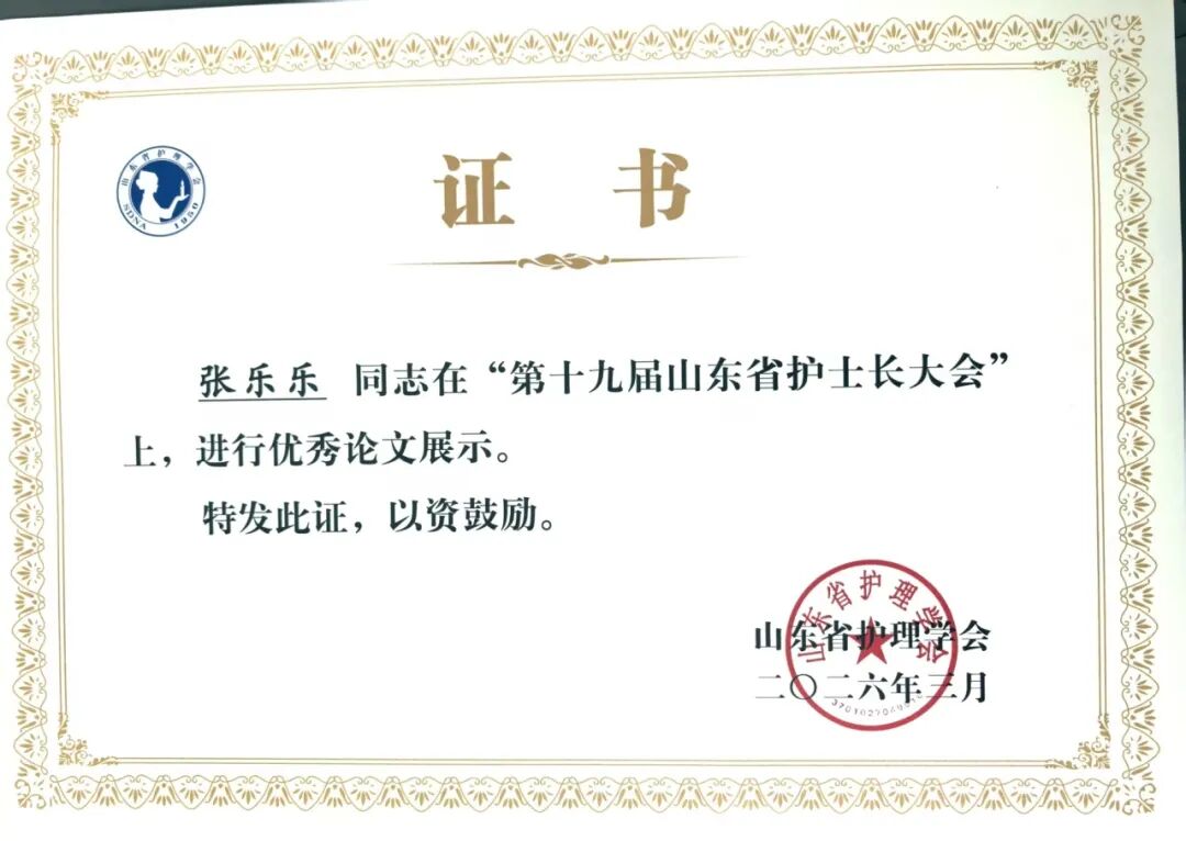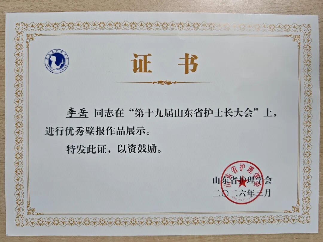 近日,由山东省护理学会主办的“第十九届山东省护士长大会”在泰安市隆重召开。本次大会以“强基增效,创新发展”为主题,汇聚全省各级医院护理管理者与骨干,围绕护理人才培养、质量安全、智能技术应用等热点话题深入交流。我院护理团队凭借扎实的专业功底、创新的护理模式和卓越的临床实践,在论文交流、典型案例评选及摄影展示交流等多个环节中脱颖而出,斩获多项荣誉。