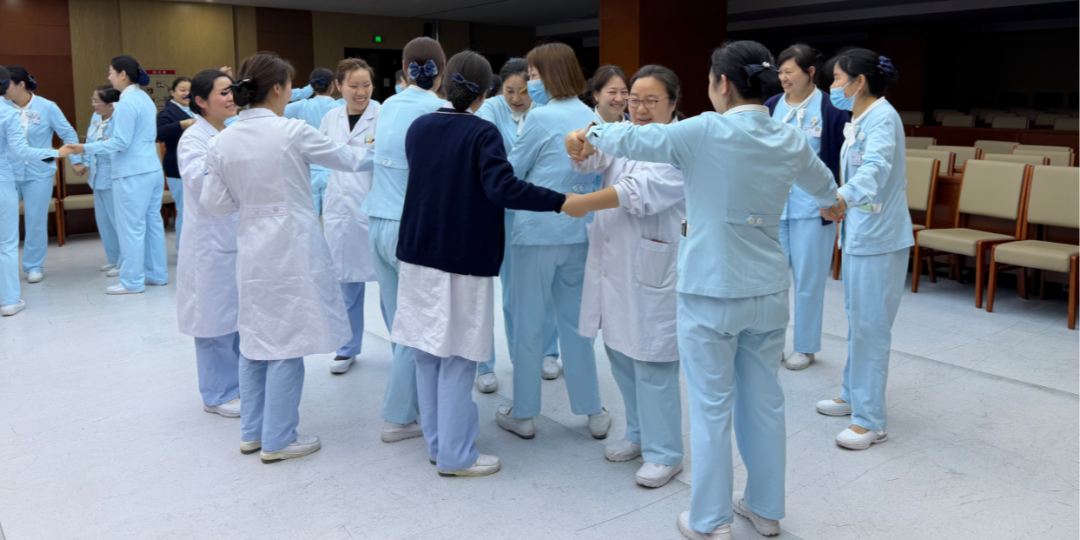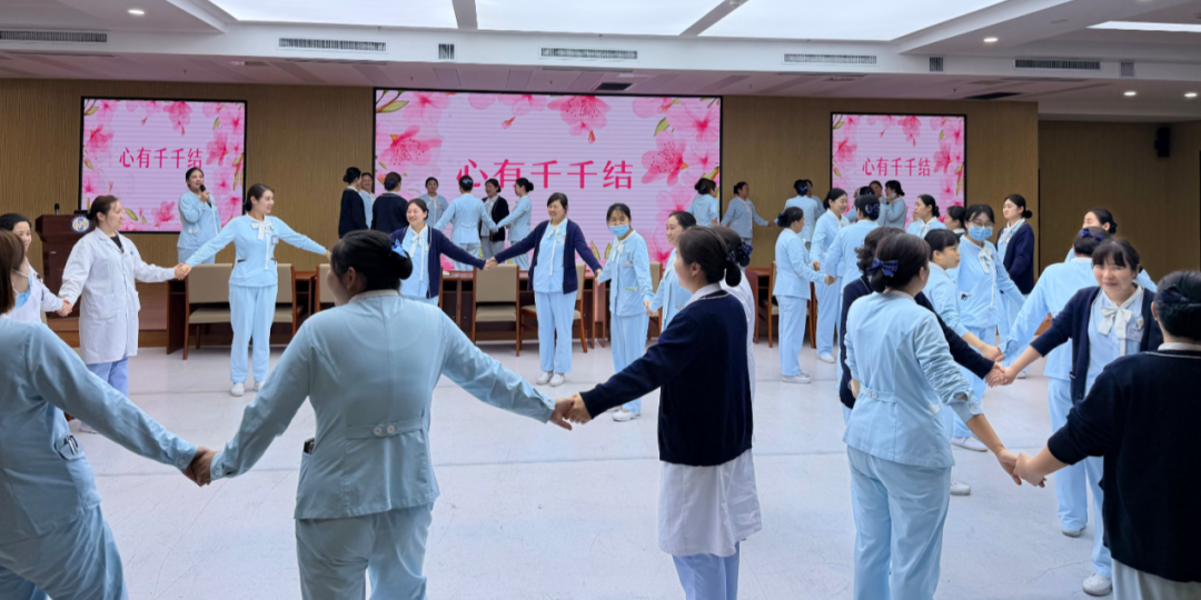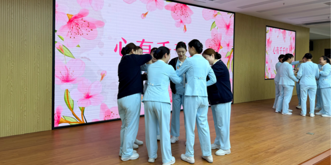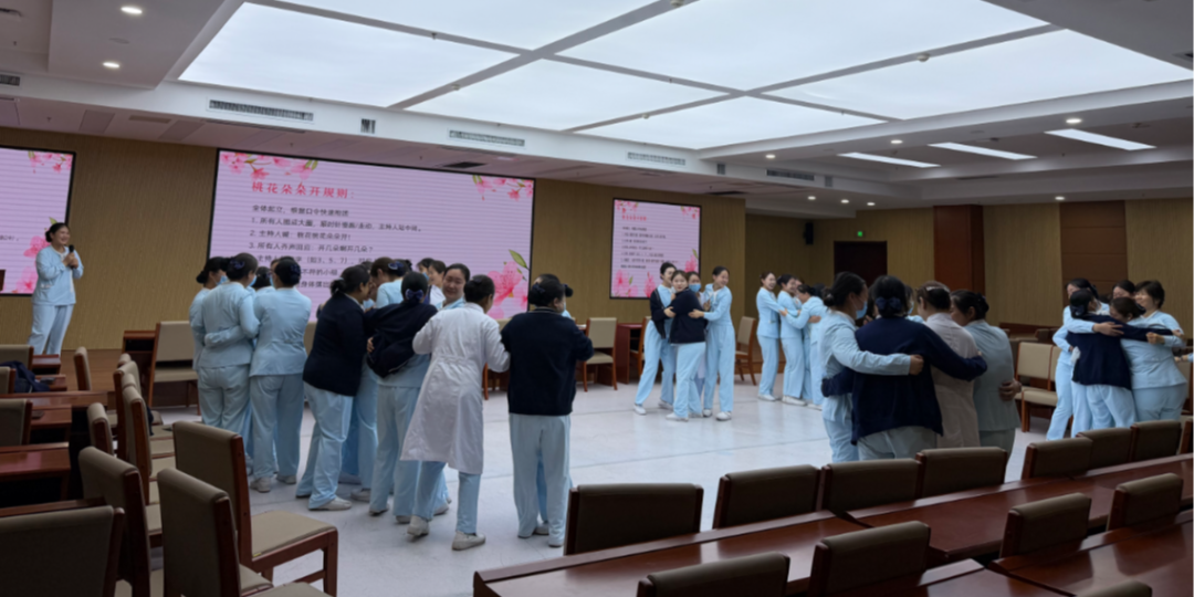 现场,护士们还分组开展了“桃花朵朵开”和“心有千千结”团队配合游戏,大家在抱团组队、解手链的互动中开怀大笑,工作中的紧绷感悄然释放。